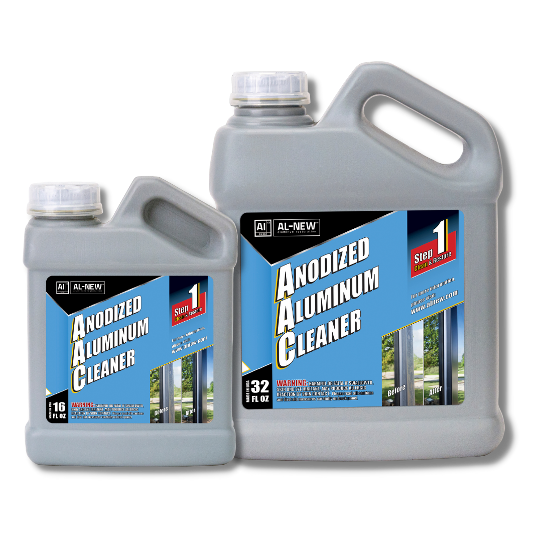 AL-NEW STEP 1 - ANODIZED ALUMINUM CLEANER is perfect for retail and commercial applications because of its ability to chemically break the bond of the white layer of oxidation attached to your anodized windows and doors. Instantly restore color, shine, and luster to previously oxidized anodized aluminum surfaces. Perfect for use on Retail and Commercial Anodized Windows and Doors.