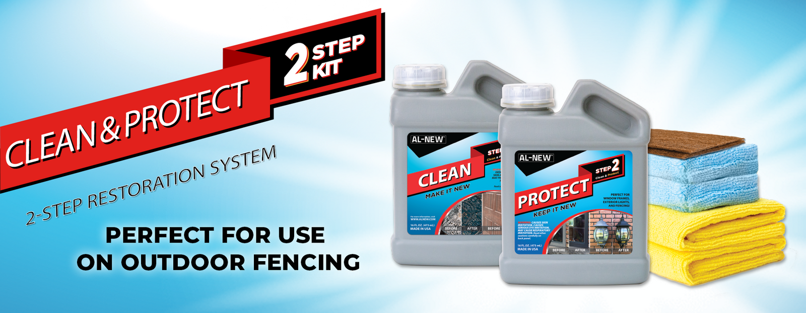 AL-NEW Clean Protect 2-Step Kit can be used to clean and restore your metal fencing to its original shine. AL-NEW removes unsightly oxidation and protect your fence against the elements.