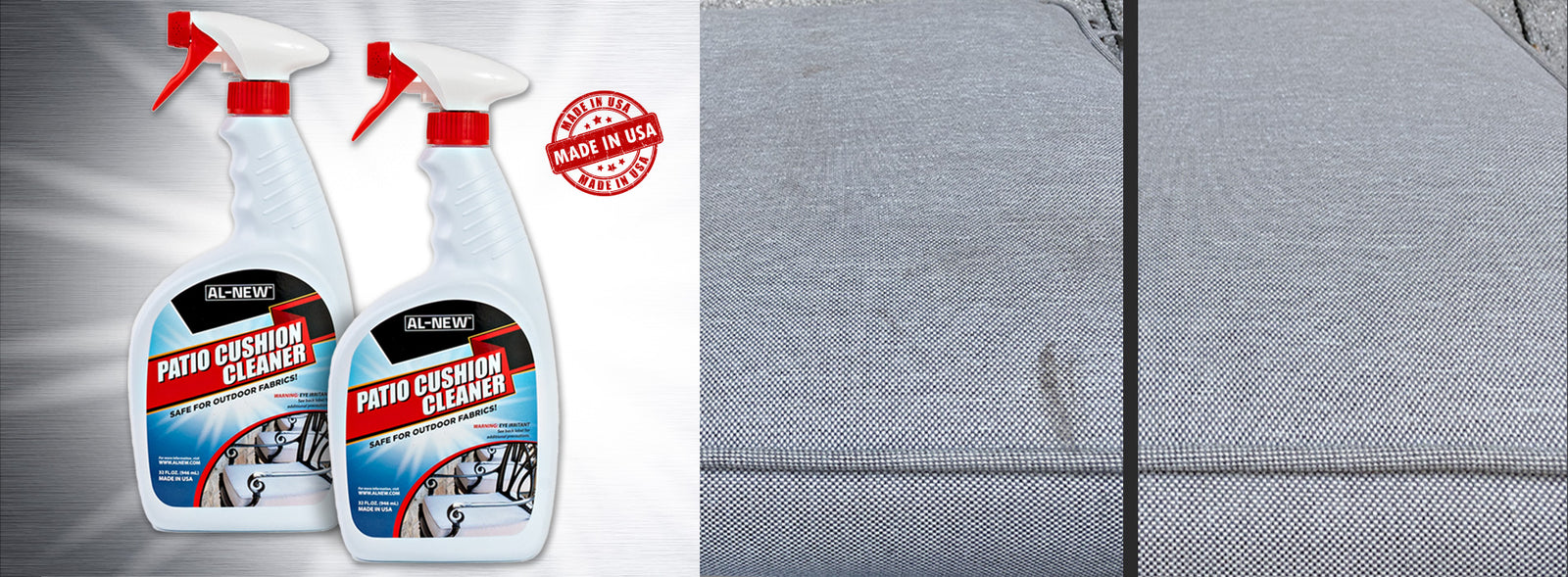 AL-NEW Patio Cushion Cleaner can help you clean your dirty outdoor fabrics and patio cushions so you can get back to enjoying your outdoor spaces. This outdoor fabric cleaner for use on a variety of outdoor fabrics including patio cushions, patio furniture covers, fabric awnings, sun shades, sail cloths, patio umbrellas, and more.
